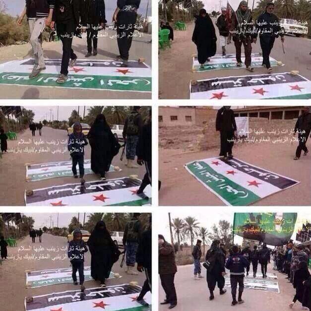 https://pbs.twimg.com/media/BbSefgnIAAA2bYL.jpg:large المواكب الحسينية في العراق تقوم بفرش علم الانتداب للجيش الكر تحت اقدام الزائرين المتوجهين لكربلاء |