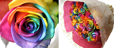 للوهله الاولى تظن انها ورود معدله بالفوتو شوب ذلك البرنامج الذي لم ينجوا منه ولكن المفاجئه انها ورود طبيعيه استطاع الهولنديين انتاجها تجمع الوان كثيره وجميله... قام عالم أمريكي يسمى (Peter van de Werken ) من أمستردام بتطويرها... بواسطة الجينات للوردة العادية ليجعلها ملونة بألوان قوس قزح ~ْ