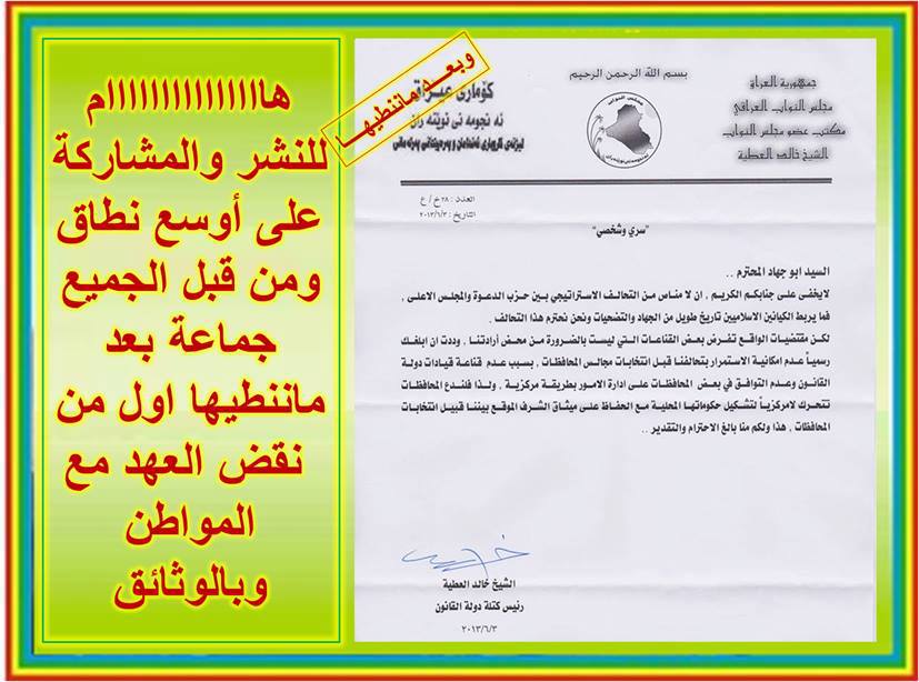المهم ان في العراق يبقى التحالف الوطني متماسكا وقويا رغمكل المصالح الانية والوقتية ...