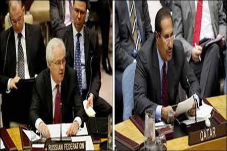 وقد طلب رئيس وزراء قطر حمد بن جاسم خلال المشاورات التي كانت جارية بين الأطراف المختلفة في نيويورك حول سوريا، لقاءاً عاجلاً مع السفير الروسي فيتالي تشوركين للتشاور وجرى اللقاء في ردهة جانبية مخصصة للقاءات الوفود المشاركة.