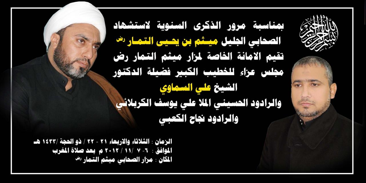 بمناسبة حلول ذكرى استشهاد الصحابي الجليل ميثم التمار (رض) بتاريخ (( 22 ذو الحجة))