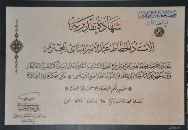 بعد قضاء ال 6أيام بكربلاء جاء الأستاذ فراس عباس للتوجه إلى بغداد حيث أقمنا في منزله مما حظينا بالكرم الطائي الأصيل الذي يعجز اللسان عن وصفه .. ناهيك عن لقائي مع الدكتور المحترم جدا د.روضان بهيه رئيس جمعية الخطاطين ببغداد الذين بدورهم سهلوا لي إلتقاط بعض الصور في مجموعة من المراقد المقدسة بحيث قضيت 5 أيام ببغداد ختمت بالاحتفاء بقدومي باستقبال الأستاذ حيدر ربيع في مكتبه ومجموعة من الخطاطين الأفاضل وفي اليوم 27 عدت للكويت .