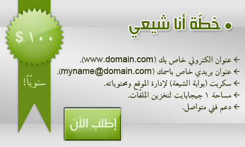 من منطلق دعمنا لكتّاب (أنا شيعي)، فقد قمنا بتوفير خطّة خاصّة لإنشاء صفحة الكترونيّة، تتضمّن عنواناً خاصّاً (domain) ومساحة 1 جيجابايت لتخزين الملفات، لنقوم لك حينها بتركيب برنامج (بوابة الشيعة)، يمكنك من خلاله نشر مقالاتك وصورك وكتبك وملفاتك بكل يسر وسهولة..