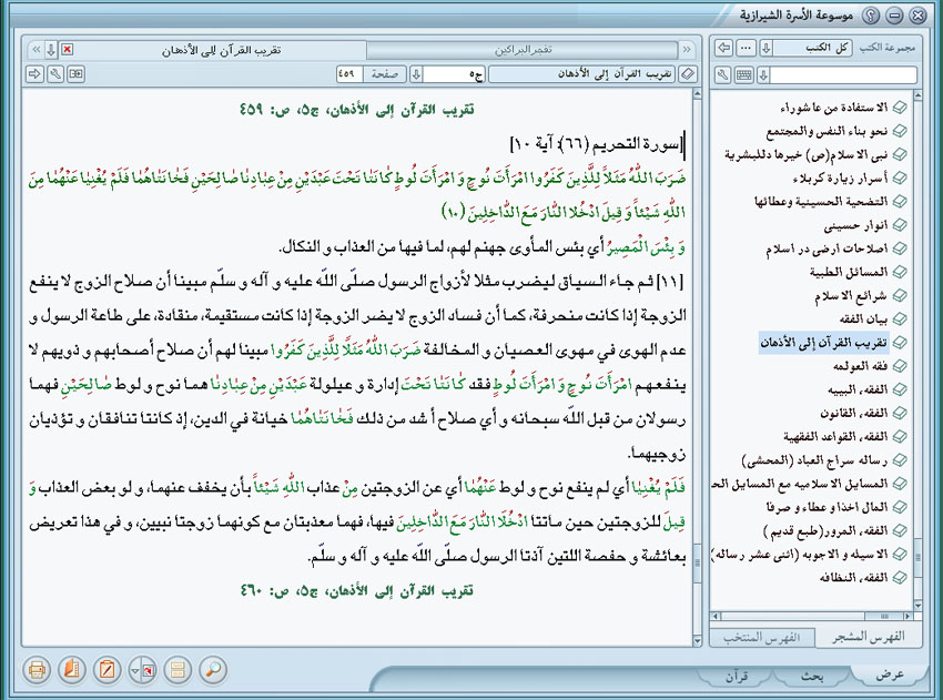 السيّد محمّد الحسيني الشيرازي تفسير تقريب القرآن إلى الأذهان، ج3، ص: 684 - 689 طبعة دار العلوم في قم 1424 سورة النور ، الآيات 11 - 20 [سورة النور (24) : آية 11] إِنَّ الَّذِينَ جاؤُ بِالْإِفْكِ عُصْبَةٌ مِنْكُمْ لا تَحْسَبُوهُ شَرًّا لَكُمْ بَلْ هُوَ خَيْرٌ لَكُمْ لِكُلِّ امْرِئٍ مِنْهُمْ مَا اكْتَسَبَ مِنَ الْإِثْمِ وَ الَّذِي تَوَلَّى كِبْرَهُ مِنْهُمْ لَهُ عَذابٌ عَظِيمٌ (11) [12] وبمناسبة ذكر الحد على القاذف يذكر القرآن الحكيم قصة «الإفك» الذي رمي به إحدى زوجتي النبي صلّى اللّه عليه وآله وسلّم «مارية» أو «عائشة» فقد نسب الخاصة القصة إلى «مارية». ونسب العامة القصة إلى «عائشة» والقصة هي: قال الإمام الباقر عليه السّلام: لما هلك إبراهيم ابن رسول الله صلّى اللّه عليه وآله وسلّم حزن رسول الله صلّى اللّه عليه وآله وسلّم حزنا شديدا، فقالت له عائشة، ما الذي يحزنك عليه؟ فما هو إلا ابن جريح فبعث رسول الله صلّى اللّه عليه وآله وسلّم عليا عليه السّلام وأمره بقتله، فذهب علي عليه السّلام إليه، ومعه السيف وكان جريح القبطي في حائط، فضرب علي باب البستان، فأقبل إليه جريح ليفتح له الباب، فلما رأى عليا، عرف في وجهه الغضب، فأدبر راجعا، ولم يفتح باب البستان، فوثب علي عليه السّلام الحائط ونزل إلى البستان واتبعه، وولى جريح مدبرا فلما خشي أن يرهقه صعد في نخلة، وصعد علي عليه السّلام في أثره، فلما دنى منه رمى بنفسه من فوق النخلة، فبدت عورته، فإذا ليس له ما للرجال ولا للنساء فانصرف علي عليه السّلام إلى النبي صلّى اللّه عليه وآله وسلّم فقال له: يا رسول الله إذا بعثتني في الأمر أكون فيه كالمسمار المحمي في الوبر، أمضي على ذلك أم أثبت؟ فقال: لا تثبت، قال عليه السّلام: والذي بعثك بالحق ما له ما للرجال وما له ما للنساء، فقال: الحمد لله الذي صرف عنا السوء أهل البيت [بحار الأنوار: ج 22 ص 155]. وفي حديث آخر فأتى به رسول الله، فقال له: ما شأنك يا جريح؟ فقال: يا رسول الله إن القبط يحبون حشمهم، ومن يدخل إلى أهليهم والقبطيون لا يأنسون إلا بالقبطيين فبعثني أبوها لأدخل إليها وأخدمها وأؤنسها.أقول: ولقد كان بعث الإمام على هذا ليتبين الأمر وإن كان بصورة إن يقتل جريح، أما ما ذكره العامة، فقد قال في الجوامع: إن سبب الإفك، إن عائشة ضاع عقدها، في غزوة بني المصطلق، وكانت قد خرجت لقضاء حاجة فرجعت طالبة له، وحمل هودجها على بعيرها ظنا منهم أنها فيها، فلما عادت إلى الموضع، وجدتهم قد رحلوا وكان صفوان من وراء الجيش، فلما وصل إلى ذلك الموضع وعرفها أناخ بعيره حتى ركبته، وهو يسوقه حتى أتى الجيش، وقد نزلوا في قائم الظهيرة. أقول: وهناك نسب المنافقون إلى عائشة وصفوان الإثم و أخذوا يبثونه، وقد أطال العامة في الحديث، لكن الغالب أن طرقه غير صحيحة، ومن المحتمل وقوع الأمرين كما في كثير من الآيات القرآنية التي يتعدد سبب نزولها إِنَّ الَّذِينَ جاؤُ بِالْإِفْكِ أي بالكذب العظيم الذي قلب وجه الحقيقة، ويقال للكذب الإفك، لأنه يقلب الحقيقة إلى غير واقعه، وأصل الإفك القلب، ولذا قيل لمدائن لوط «مؤتفكات» لأنها قلبت ظهر البطن عُصْبَةٌ أي جماعة مِنْكُمْ أيها المسلمون، ولعل الإتيان بهذه الخصوصية، لإفادة أن الإفك، إنما كان وليد جماعة ذات هدف واحد، فليس كلاما قاله مغرض وإنما حركة مقصودة ضد الرسول صلّى اللّه عليه وآله وسلّم فليعرف المسلمون تلك العصبة وليطلعوا على نواياهم لا تَحْسَبُوهُ أيها المسلمون شَرًّا لَكُمْ يذهب بشرفكم ورفعة مقامكم وطهارتكم بَلْ هُوَ خَيْرٌ لَكُمْ إذ يوجب الأجر، ومعرفة المنافقين وتمرين الأمة على الصعوبات كما قال الشاعر: جزى الله النوائب كل خير**و إن جرعنني غصص بريقي أهاجتني زمانا كي تريني **على ملأ عدوي من صديقي لِكُلِّ امْرِئٍ مِنْهُمْ أي من تلك العصبة التي جاءت بالإفك مَا اكْتَسَبَ مِنَ الْإِثْمِ قدر ما خاض في الحديث حول المرأة البريئة «مارية» وَالَّذِي تَوَلَّى أي تحمل كِبْرَهُ أي القسط الأكبر مِنْهُمْ أي من العصبة لَهُ عَذا