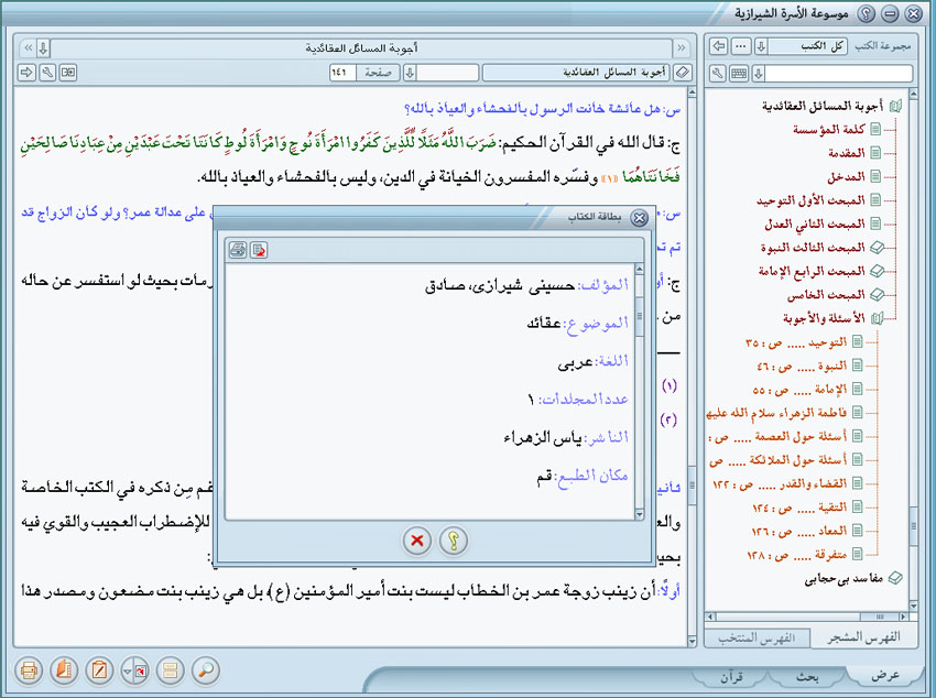 رأي الشيعة في أمهات المؤمنين وبخاصة في عائشة كتب الأستاذ سعيد الأفغاني لمناسبة ما يقوم به من بحث عن عائشة، كتب كتابا إلى المؤلف جاء فيه: 1 - ما هو رأي الشيعة المتفق عليه في أمهات المؤمنين عامة مستندا إلى المصادر الموثوق بها المجمع على احترامها عندهم. 2 - رأيهم في السيدة عائشة خاصة، وجميع ما كان منها. 3 - رأيكم الخاص في الأمرين على التفصيل بصفتكم أبرز مجتهدي الشيعة اليوم أثرا في الاصلاح. 4 ما هي المراجع المعتمدة عند الشيعة التي يحسن بالباحث الرجوع إليها كلما أراد معرفة رأيهم الرسمي في قضية ما لأنه قد ثبت عندي أن الاعتماد في ذلك على ما حكي من آرائهم في كتب غيرهم كابن تيمية وابن حزم في المتقدمين والنشاشيبي مثلا في المعاصرين مخالف لأصول البحث العلمي المجرد. 5 - هل صحيح ما حكي عنهم في كتاب الاسلام الصحيح للنشاشيبي؟ وخاصة ما جاء في ذيل الصفحتين 86 و 87 منه بحق السيدة عائشة. الجواب: قلتم انكم تريدون أن تكون دراستكم حيادية، شاملة وجهات النظر كلها، وقد أعوزكم ان تدرسوها من وجهة النظر الشيعية، وإنكم لم تقتنعوا بما رأيتم من آرائهم في كتب غيرهم، ابن تيمية مثلا في منهاج السنة، والإنصاف يقتضي دراستها في مظانها، وطلبتم ان أدلكم على مصادر شيعية وتعيين ما نراه محترما موثوقا يعبر في نظرنا عن وجهة النظر الشيعية لتستطيعوا الاعتماد عليها، وإن أبين لكم رأيي الخاص في الموضوع، وطلبتم في كتابكم الثاني الجواب عن خمسة أمور لا تخرج عما طلبتم في الكتاب الأول الجواب عنه. فأقول مجيبا وسائلا منه تعالى التوفيق والتسديد لصواب القول: اما قولكم إن في نيتكم أن تكون الدراسة حيادية: فنعم ما تفعلون إذا أمكنكم ذلك. فان ما في الكتب الإسلامية مما يرجع إلى الآراء والديانات قد اختلط فيه الحابل بالنابل والحق بالباطل واعتورتها العصبيات والأهواء، ومضى على المسلمين أحقاب وقرون دخلت فيها السياسة في الدين، واستغل الدين لتوطيد الملك واختلقت الأحاديث والأقوال حسب رغبة الملوك والأمراء والسلاطين وبعض من يحملون لقب الخلافة. فعل ذلك خوفا وطمعا ولارغام فريق وتأييد فريق كما هو الشأن في كل عصر وزمان واقتضت السياسة في غالب العصرين الأموي والعباسي الغض من العلويين وإرغامهم واقصاءهم وإخمال ذكرهم واختلاق كل ما فيه إرغامهم وتأييده وتشييده لا سيما من طريق الدين والناس عبيد الدنيا إلا من عصمه الله وقليل ما هم. ومهما بذل العلماء جهودهم في تنقية الأخبار لم يستطيعوا وإن تخيلوا ذلك؛ لأن العصبيات المذهبية والعداوات الدينية تأصلت في النفوس وتوارثها الخلف عن السلف ومن أراد تجريد نفسه عنها لم يوفق لكثرة ما في الامر من الاختلاط إلا ما شاء الله ولا يمكننا تنزيه ما عند فريق دون فريق عن ذلك فما علينا إلا أن ننعم النظر ونأخذ بما أتفق عليه الكل وتوافقت عليه الأخبار من الطرفين وأيده الكتاب العزيز والسنة الثابتة عند الجميع. أما عدم إقتناعكم بما ترونه من آراء الشيعة في كتب غيرهم فهو الصواب لأنها قد كثرت النسب الباطلة إلى الشيعة في كتب غيرهم وتداولها الناس ولا سيما ما في كتب ابن تيمية الذي غلب عليه التعصب وأتى في كتابه الذي سماه منهاج السنة بما تشمئز منه النفوس وعاب مسلكه كثيرون من علماء أهل السنة كالامام السبكي وغيره بما لا يتسع المقام لبيانه. وشهد عليه ابن بطوطة بأن في عقله شيئا. أما الجواب عن السؤال الأول: فيمكنني في هذه العجالة ان أبين لكم خلاصة عقيدة الشيعة المتفق عليها في نساء الأنبياء عليهم الصلاة والسلام عامة وفي أمهات المؤمنين نساء النبي ص خاصة: يعتقد الشيعة وجوب تنزيه الأنبياء عن جميع العيوب والنقائص سواء كان ذلك في أفعالهم كالاكل على الطريق ومجالسة الأرذال أو صناعاتهم ككونه حجاما أو زبالا أو أخلاقهم كالحقد والحسد والجبن والبخل أو في أجسامهم كالبرص والجذام أو عقولهم كالجنون والبله أو في الخارج عنهم كدناءة الآباء وعهر الأمهات أو الأزواج فتحصل من ذلك أن زوجة النبي يجوز أن تكون كافرة كما في امرأتي نوح ولوط ع ولا يجوز أن تكون زانية لأ