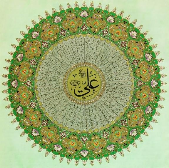 زخرفة رائعة لأحاديث النبي صلى الله عليه وآله بحق أمير المؤمنين علي عليه السلام . تصميم الموالية صلوات