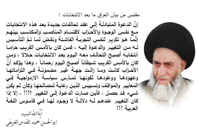بيان ما بعد انتخابات العراق 2014 - آية الله المقدس الغريفي