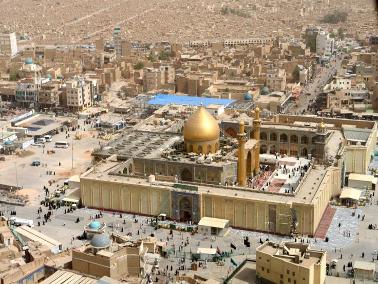 السلام عليكم ......اخواني اخواتي هاي الصورة لمرقد امير المؤمنين علي بن ابي طالب عليه السلام من الطائرة ويظهر المرقد الطاهر وايضا تظهر بداية مقبرة وادي السلام