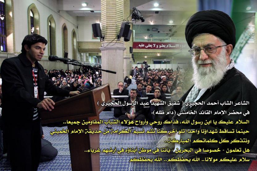 موثر جداً شاب بحريني يتحدث بحضور الامام الخامنئي حفظه الله