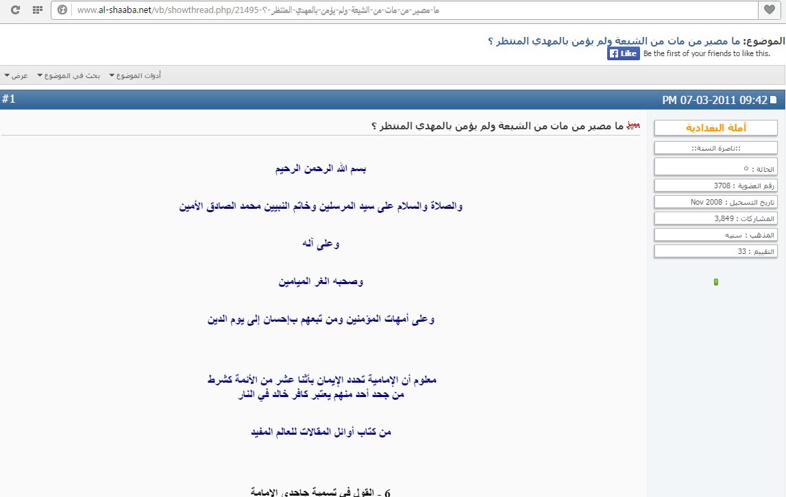 0 عنوان غبي ومضحك :ما مصير من مات من الشيعة ولم يؤمن بالمهدي المنتظر ؟