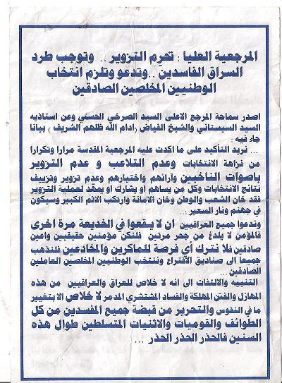 والا اين قال السيد السيستاني دام ظله ان يرفض رفضا كليا قاطعا كل تجاربهم الانتخابية ؟