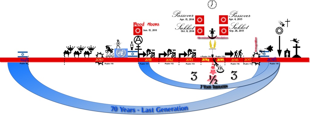 كذالك هناك اشارة الى معركة هرمجدون التي يعتقدها اليهود والتي وضعوا لها تاريخ في عام 2017 ميلادي ، وكل هذه الاحداث وما سيلي داخل عندهم في حسابات الحقبة الاخيرة لدولة اليهود التي تبدأ مع بداية دولتهم الحديثة / الاخيرة عام 1948 وتنتهي بعام 2018 .