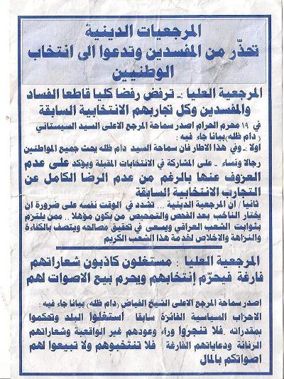 والا اين قال السيد السيستاني دام ظله ان يرفض رفضا كليا قاطعا كل تجاربهم الانتخابية ؟